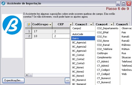 Assistente de Importação - Passo 6 - Relacionamento das colunas