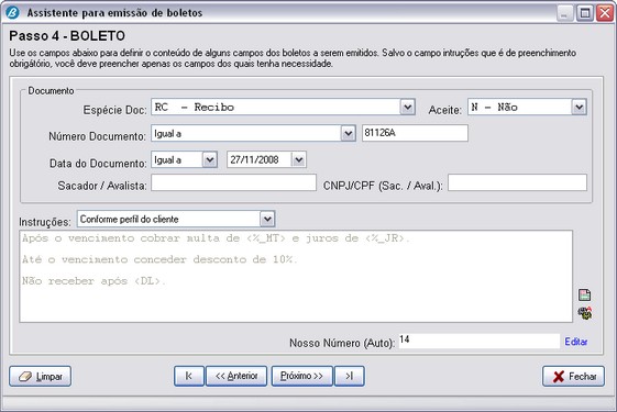 | Caso precise ajustar o Nosso Número, clique no botão Editar. Mas atenção: procure sempre emitir boletos com Nosso Número seqüencial e único, evitando emissão de boletos em duplicidade.